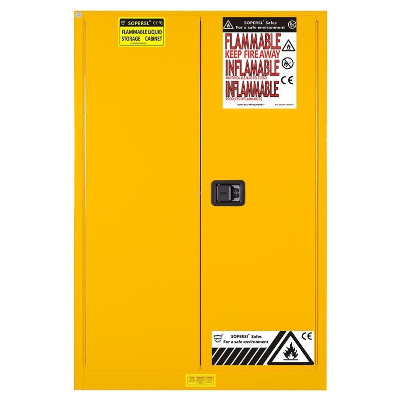 SUPER 45-গ্যালন জ্বলনযোগ্য নিরাপত্তা ক্যাবিনেট (170L ক্ষমতা) ক্লাস I, II, এবং III জ্বলনযোগ্য তরলগুলির সাথে সামঞ্জস্যপূর্ণ সঞ্চয় করার জন্য ডিজাইন করা হয়েছে।38 মিমি আইসোলেটিং এয়ার স্পেস, ডাবল ২ ইঞ্চি ফ্ল্যাশ আটকানোর ভেন্টেশন, এবং ২ ইঞ্চি স্পিল কন্টেনমেন্ট স্যাম্প, এটি এনএফপিএ ৩০ এবং ওএসএইচএ ১৯১০.১০৬ মান পূরণ করে।